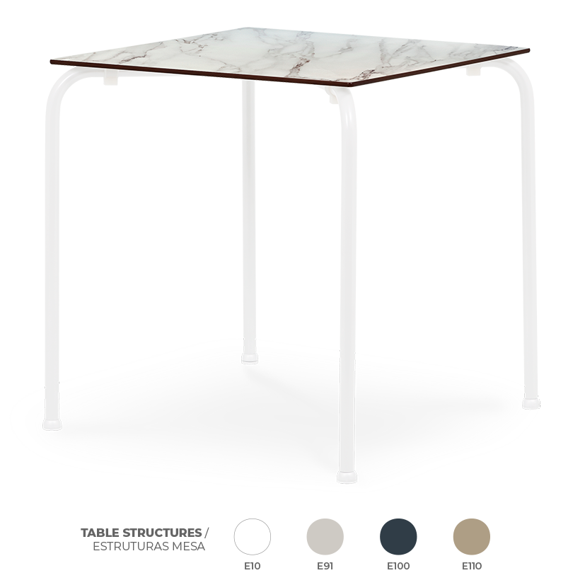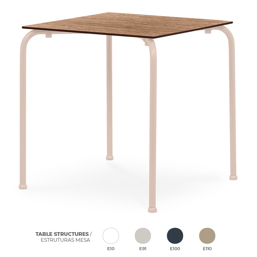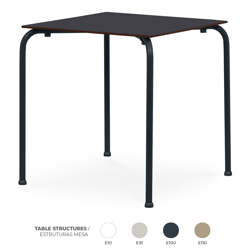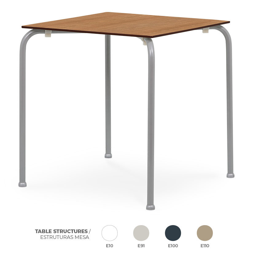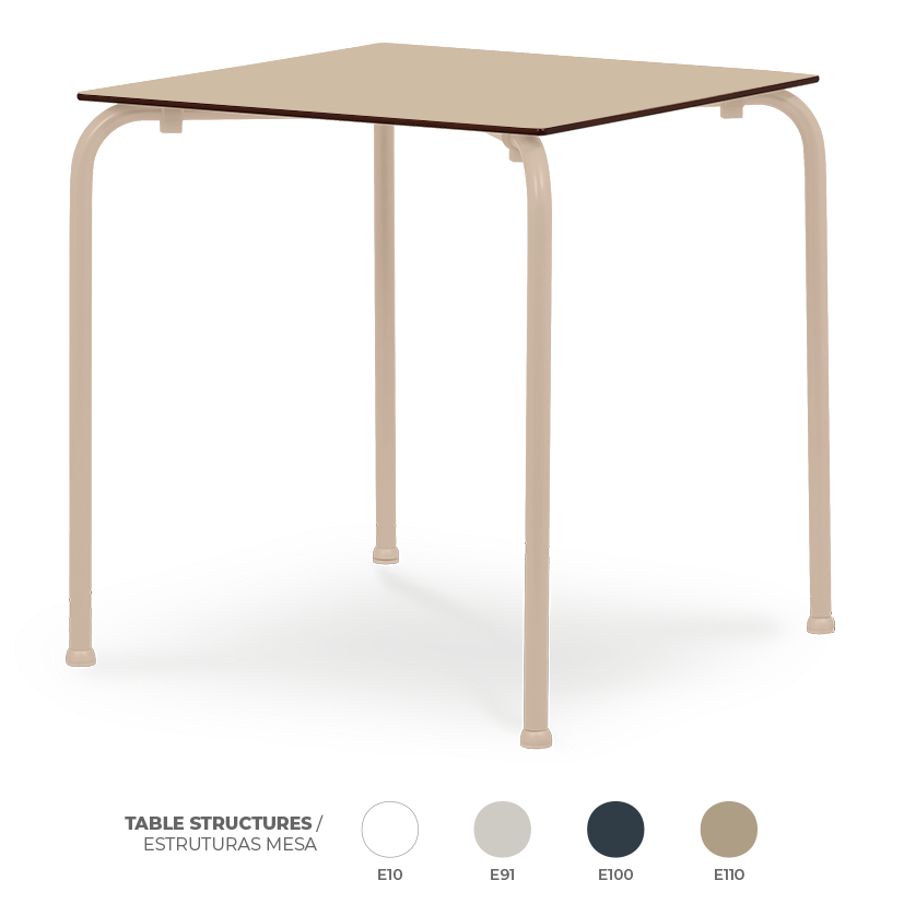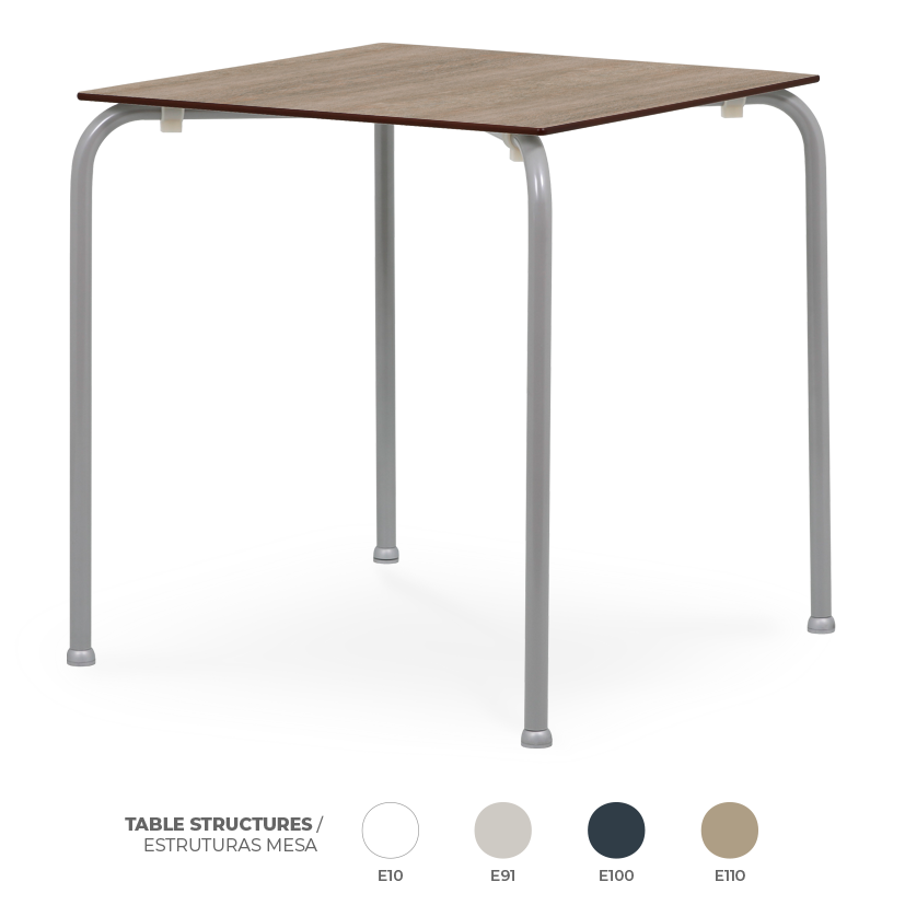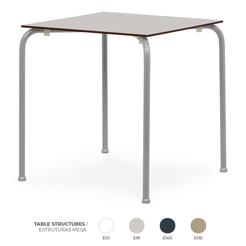 Esteticamente apelativas, as mesas Compacto são aconselháveis, não só mas também, para a utilização em ambientes com condições particulares especialmente pelo seu comportamento térmico e pela sua resistência. O sistema de reguladores dos pés permite que esta se adapte a pisos irregulares mantendo sempre o equilíbrio.