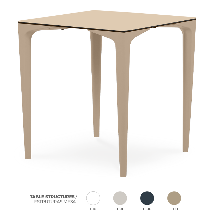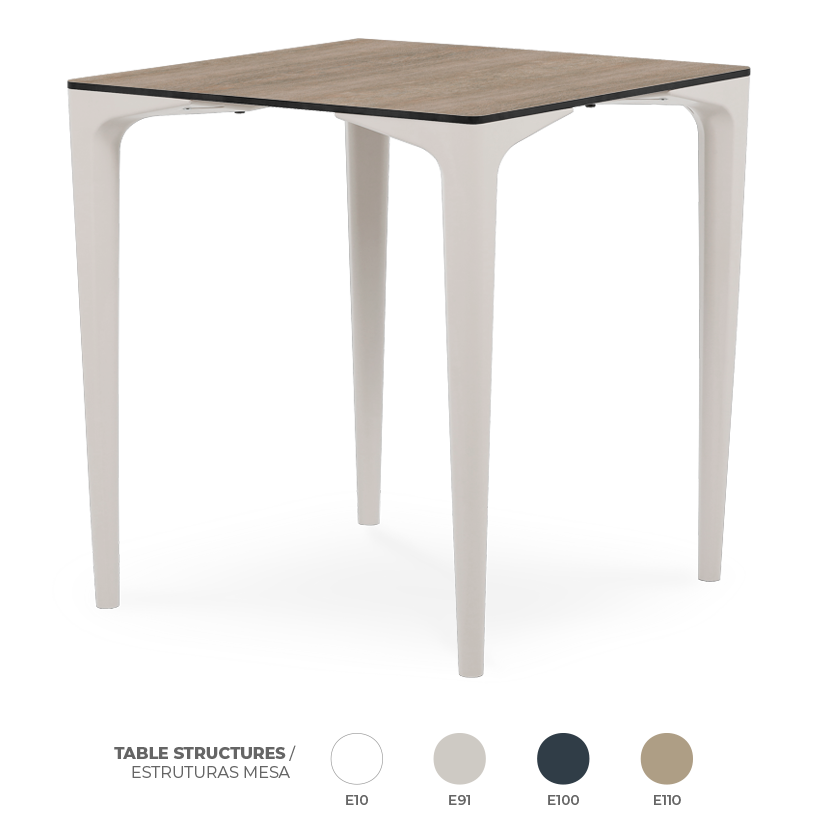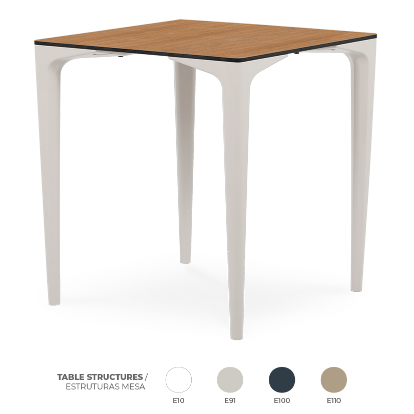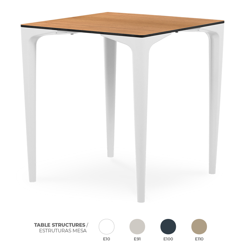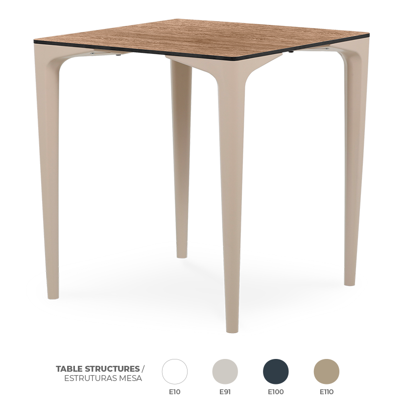 As influências do design escandinavo em conjunto com a associação a elementos da natureza dão origem a uma peça elegante. A possibilidade do tampo em diferentes texturas permite que a mesma se adapte consoante o espaço a que se destina. O anti deslizamento é assegurado pela aplicação de tacos de borracha nos pés.