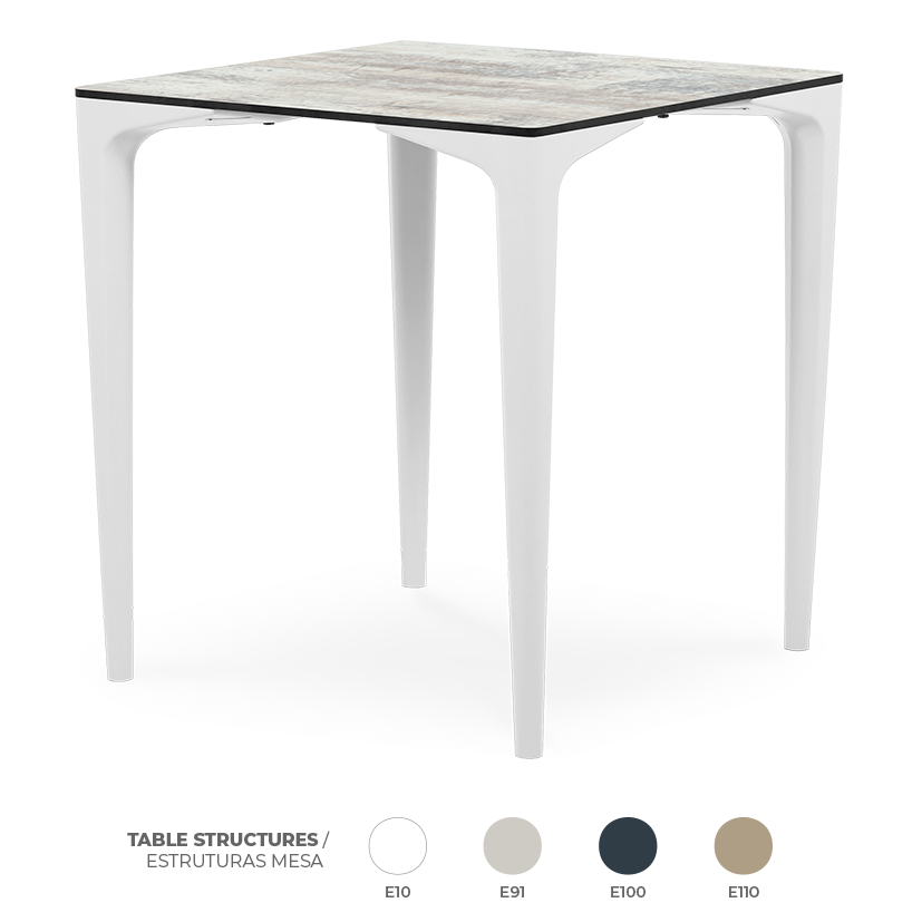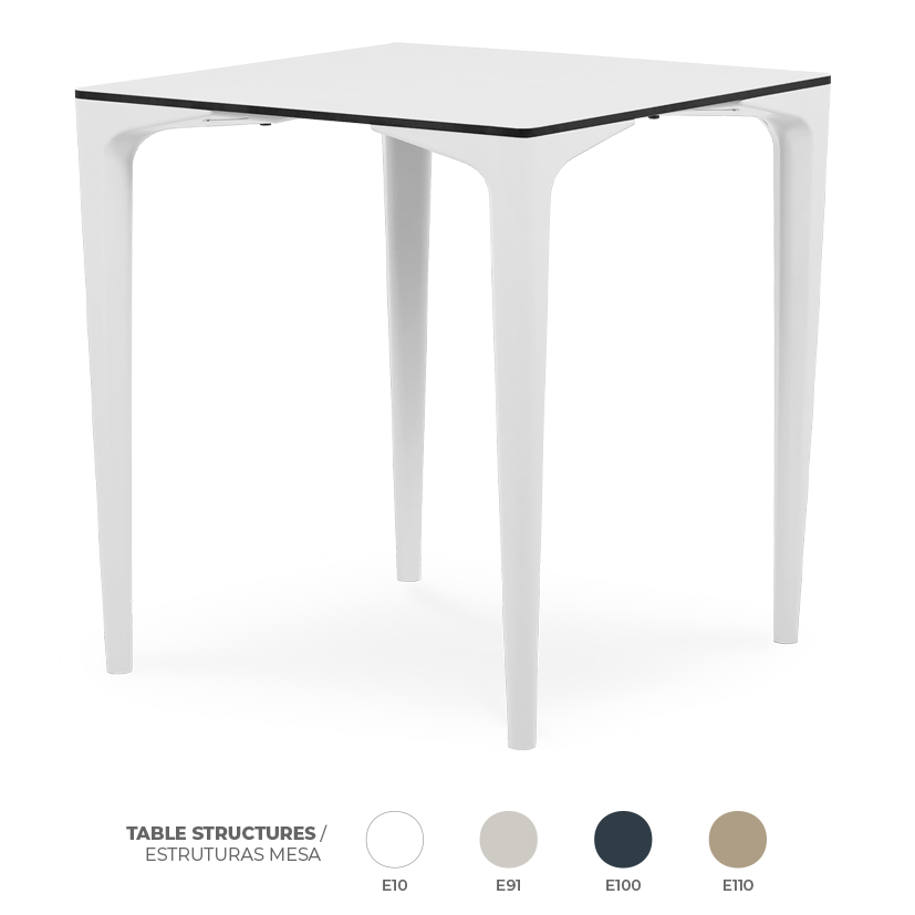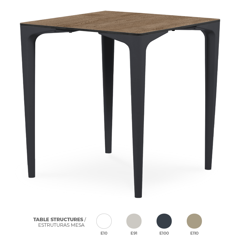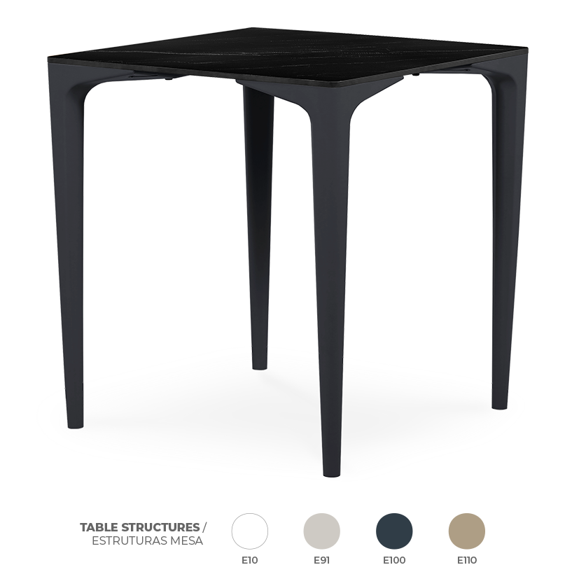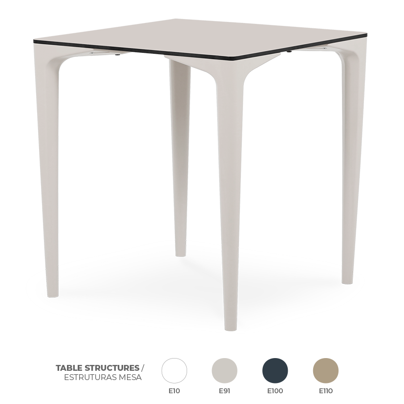 As influências do design escandinavo em conjunto com a associação a elementos da natureza dão origem a uma peça elegante. A possibilidade do tampo em diferentes texturas permite que a mesma se adapte consoante o espaço a que se destina. O anti deslizamento é assegurado pela aplicação de tacos de borracha nos pés.