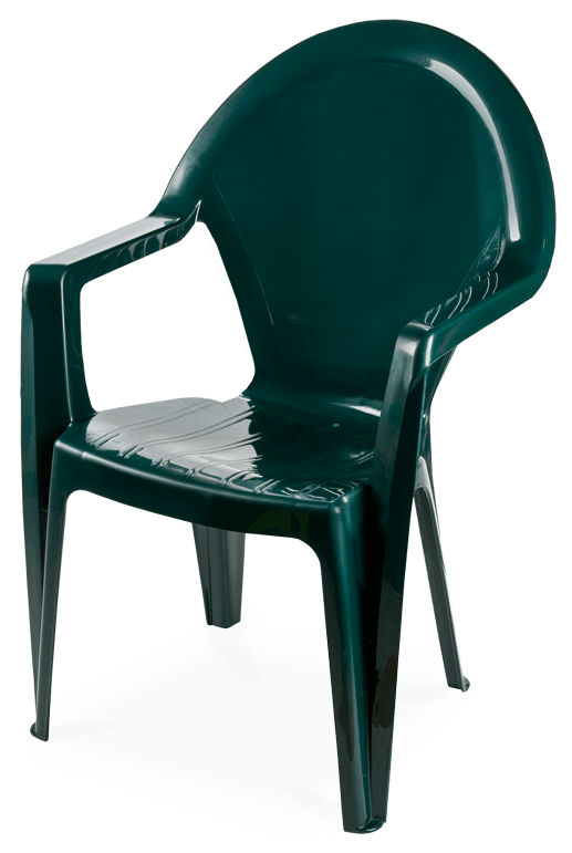 La silla monobloque, diseñada para su uso en un ambiente exterior, tiene su prominencia en el respaldo, que se caracteriza por su forma robusta y sugiere la forma de una concha del mar.